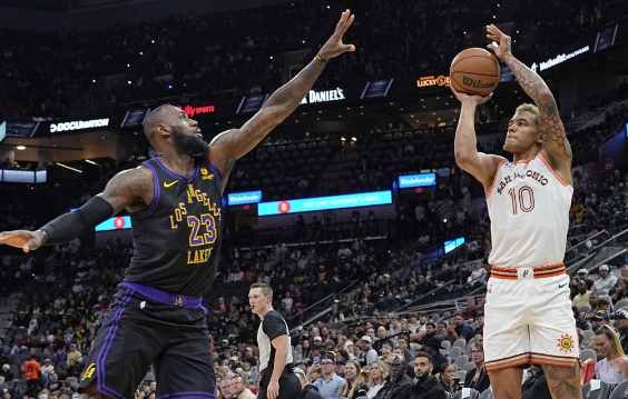 籃球直播吧12月16日訊 NBA常規(guī)賽,主場(chǎng)作戰(zhàn)的圣安東尼奧馬刺以129-115擊敗洛杉磯湖人。文班亞馬13分15籃板5助攻,詹姆斯23分7籃板14助攻。